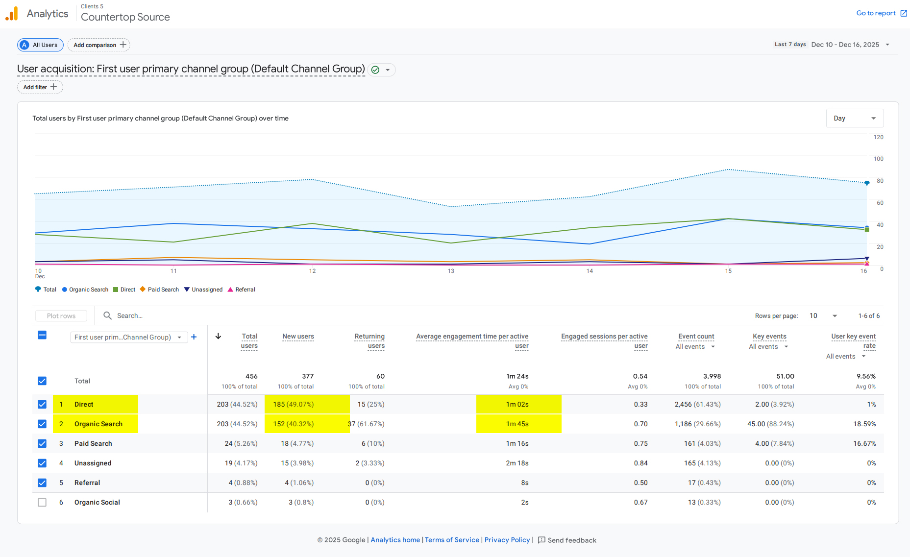 Definitions: Page View means that a user has loaded (or reloaded) a page on your website. User Engagement refers to how much time users spend actively interacting with your website or app. It helps you understand how interested and involved visitors are with your content. Session Start refers to the beginning of a user session — essentially when someone lands on your site or app and begins interacting with it. First Visit refers to the very first time a user lands on your website or app using a specific device/browser. Scroll refers to a user scrolling down your page — specifically when they reach 90% of the page height.