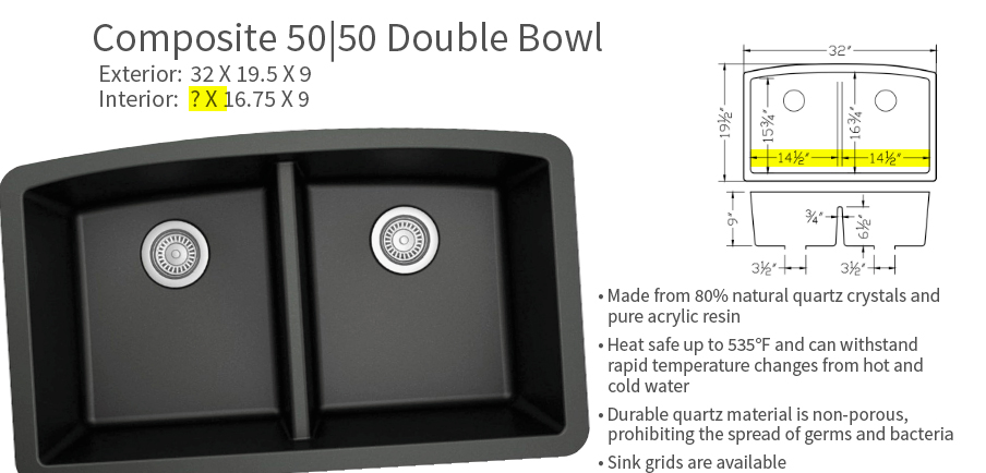 "The dimension on the CAD Drawing is a simplified version of what we found online. The online specs do not have an overall inside width or an outside depth dimension. The interior and exterior will only differ by the thickness of the material of the sink.” - CAD Dept.